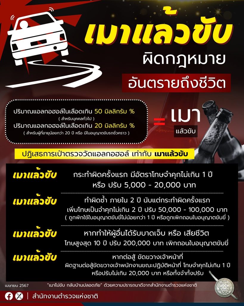 🚫กฎหมายเกี่ยวกับเมาแล้วขับ ขับขี่ขณะดื่ม – เมาสุรา