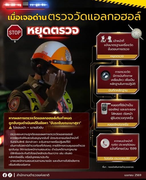 สงกรานต์2569 ตำรวจห่วงใย ตั้งด่านตรวจวัดแอลกอฮอล์ทั่วประเทศ เพื่อระงับยับยั้งการสูญเสียจากอุบัติเหตุบนถนน