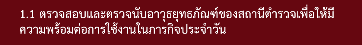 3. ตรวจสอบและตรวจนับอาวุธยุทธภัณฑ์ของสถานีตำรวจเพือ่ให้มีความพร้อมต่อการใช่งานในภารกิจประจำวัน